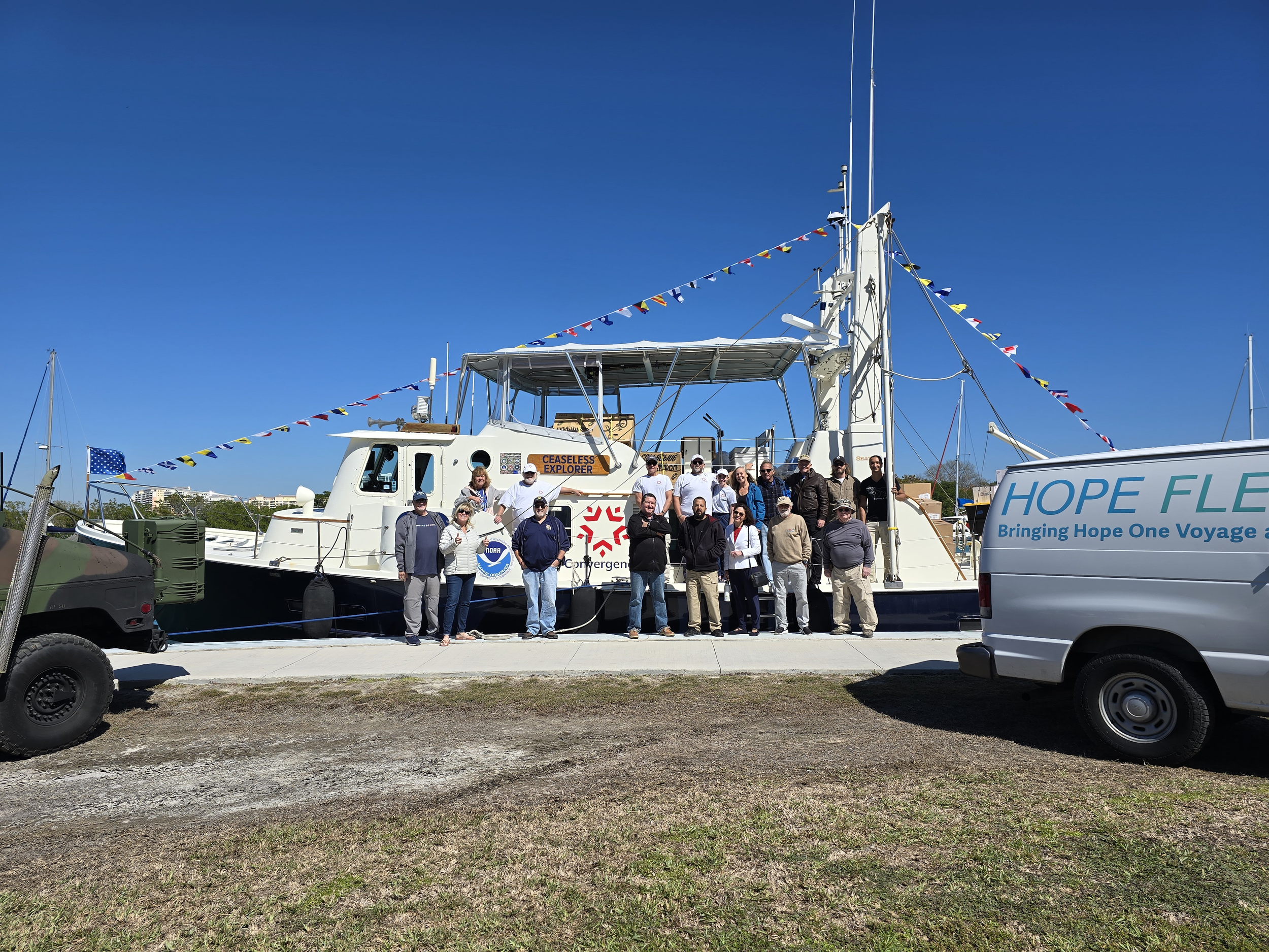 Ceaseless Explorer is being pressed into service as a Multi-Role Service Support Vessel. It will be used as a mobile clinic, humanitarian aid-delivery vessel, disaster-response platform, and a place of purpose and healing for veterans navigating PTSD and the transition back to civilian life.
